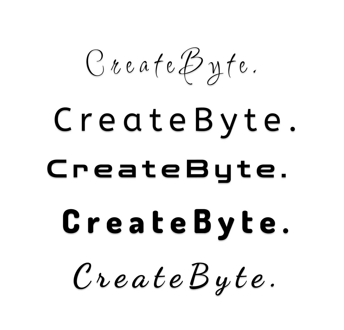 In the third part of round 4, I played with letter spacing, vertical letter placement, separating “Create” and “Byte”, word alignment, centre stroke, and the drop shadow effect.