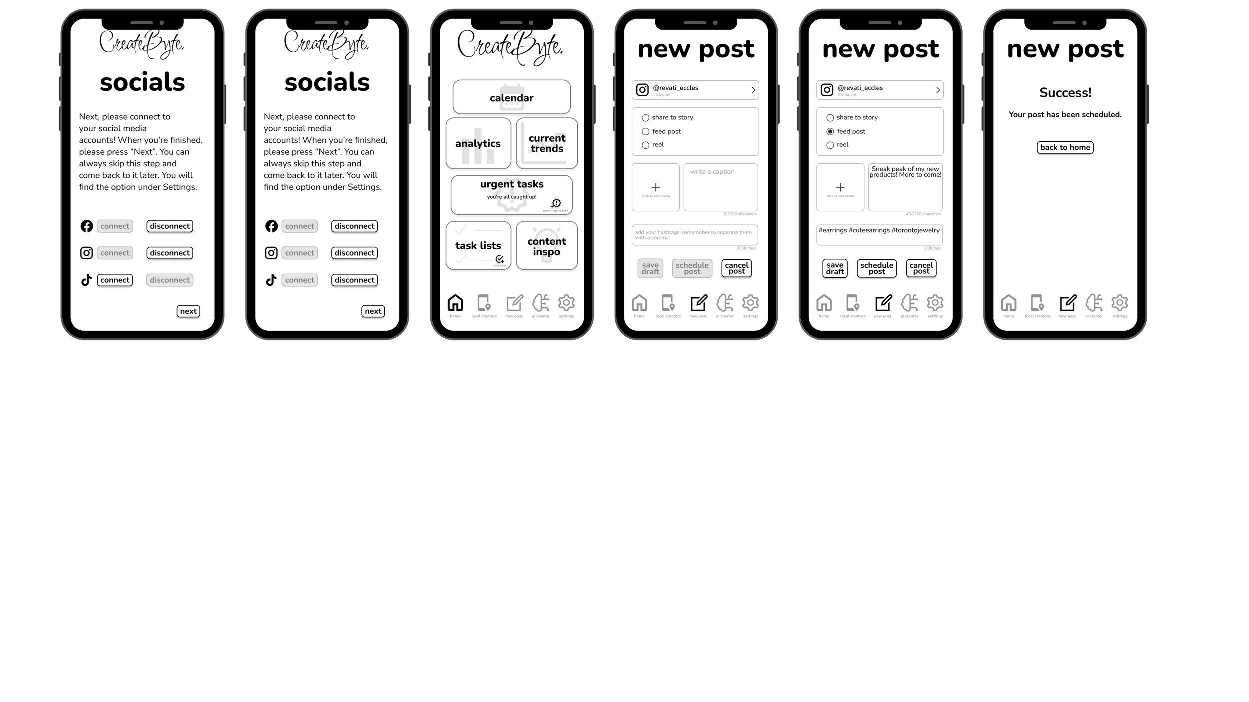 One of the ideas that I did not consider was being able to repurpose the content that was posted on social media from the app to other platforms like Shopify and Etsy. To remedy this, I would actually add the option to be able to download the post (with or without the caption) after creating it (scheduling it, posting it, or even saving it as a draft).