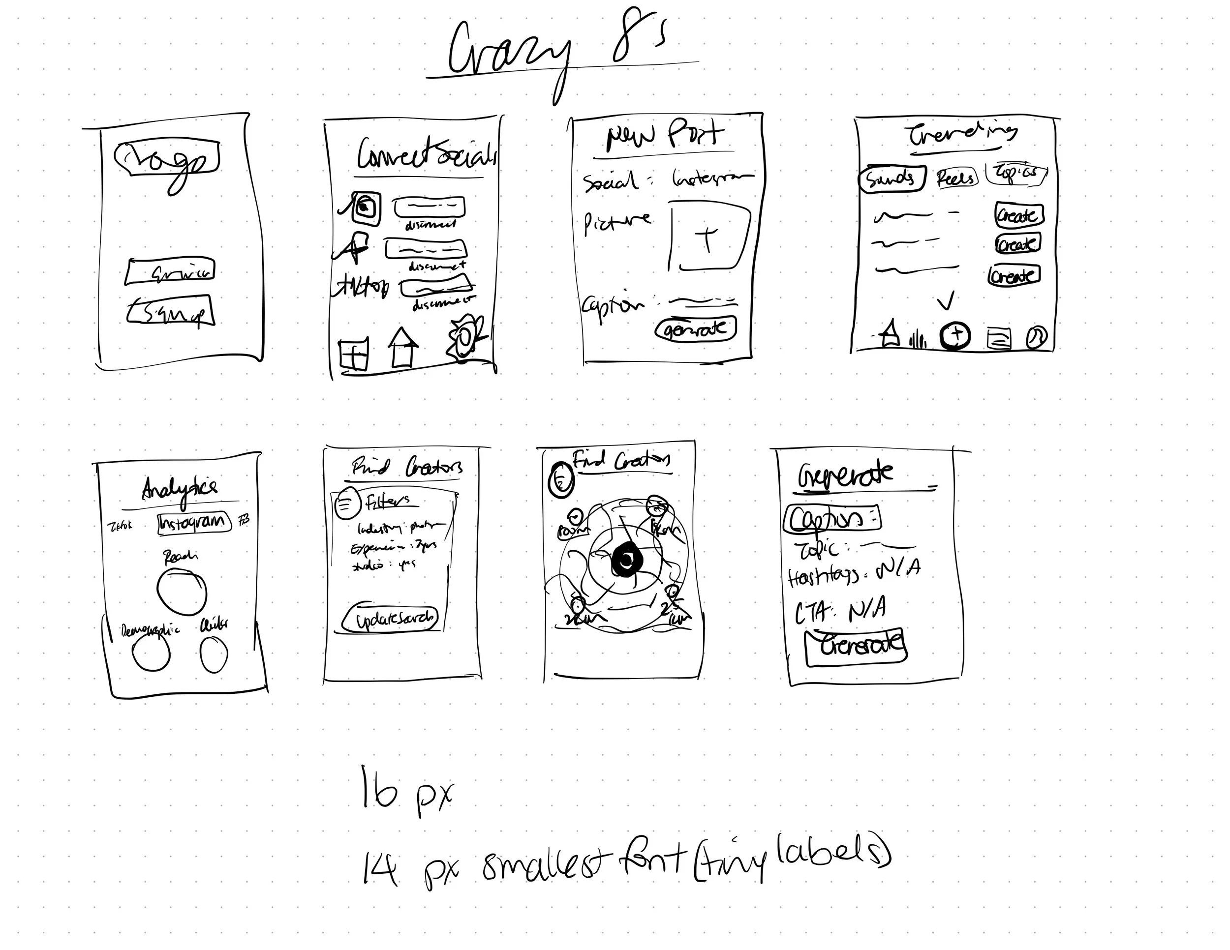 I used the Crazy 8’s method to create some initial sketches of the different features, and then I went through and created sketches of the Task Flows.