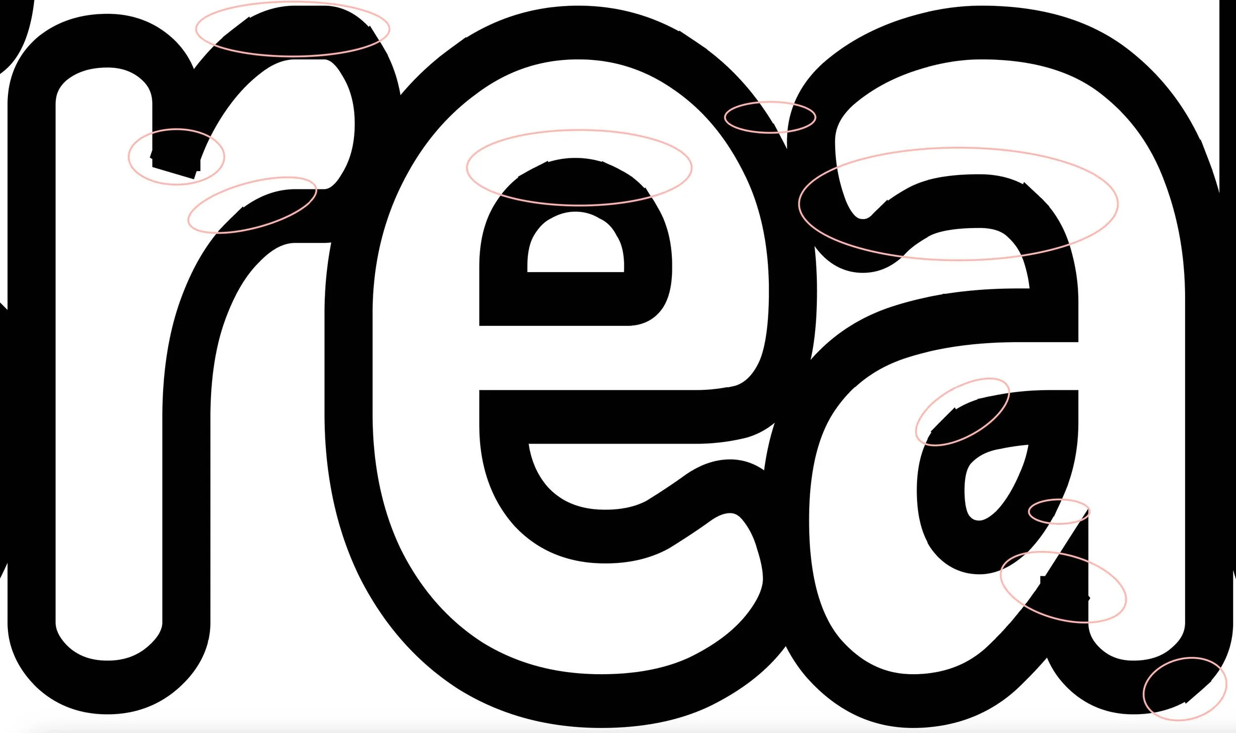 I then made adjustments to the “rea” part of the wordmark. I smoothed out all the jagged edges of these three letters as well. All vector adjustments are circled in red.