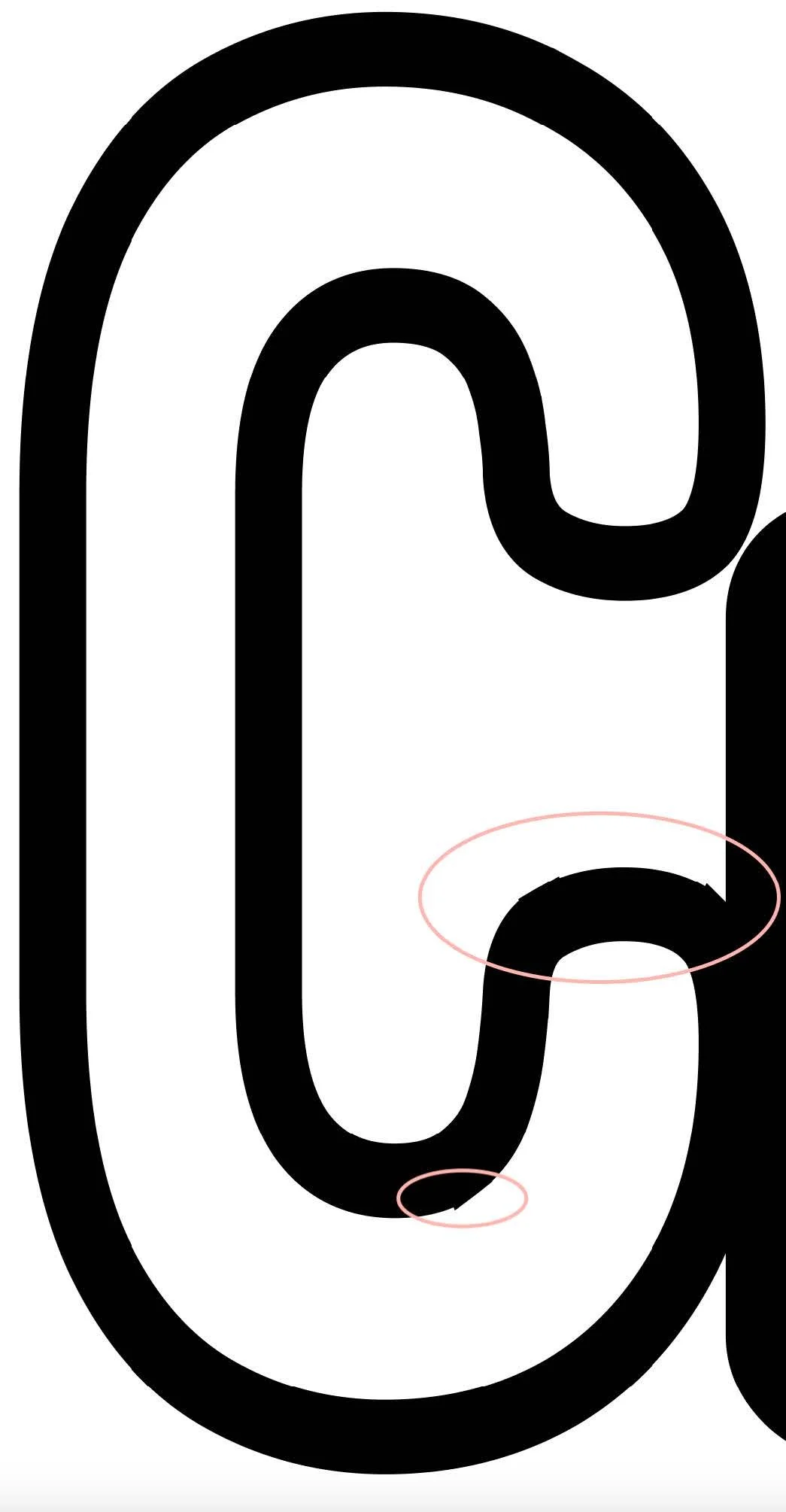I made adjustments to the wordmark vector letters to personalize the branding further. I started by smoothing out all of the jagged edges of the “C”. All vector adjustments are circled in red.