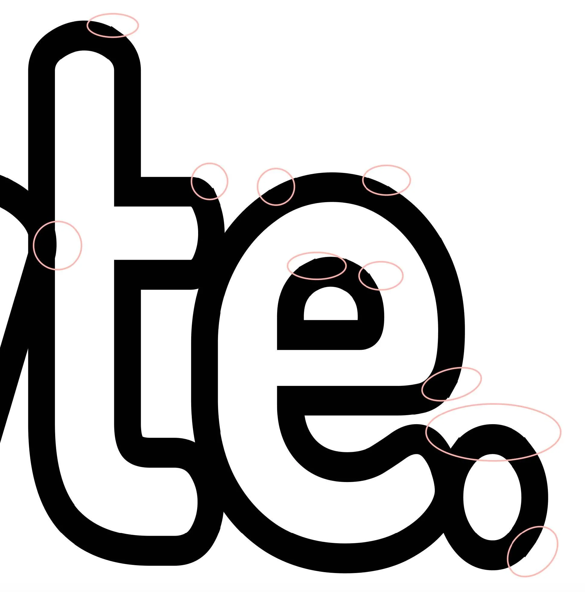 I fixed the overlap between the “y“ and the “t” (the “y” is not visible In this image). I smoothed out all the jagged edges of the letters and the period. I filled in the period to make it solid instead of an outline, and I also adjusted the period’s shape to reflect a circle instead of an oval. All vector adjustments are circled in red.